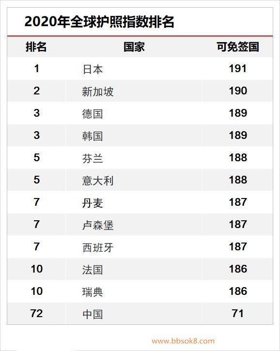 美国和英国护照,免签或者落地签国家数都是186个,排名并列第五,两个国家纪念都没有增加新的免签或落地签证国,貌似他们都不大可能重新夺回他们在2015年曾拥有的第一的位置。