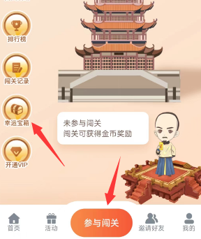 然后在中间的菜单,《参与闯关》里面点击幸运宝箱,
