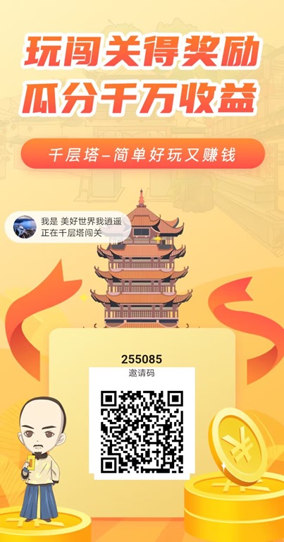 立即扫码,加入千层塔,开启爬塔赚金币赚钱之旅!