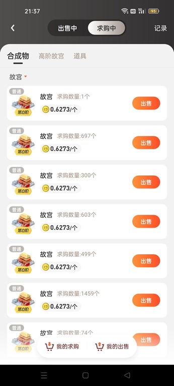 成功发布后,你的挂单就会按价格排序出现在求购中。想要发布出售单也是类似,在我的出售中,点击加号,填写单价和数量,然后预付对应商品即可成功发布。交换所中除了建筑物,还可以交易背包盒,奖券箱容量,点击上方的分类切换即可查看。