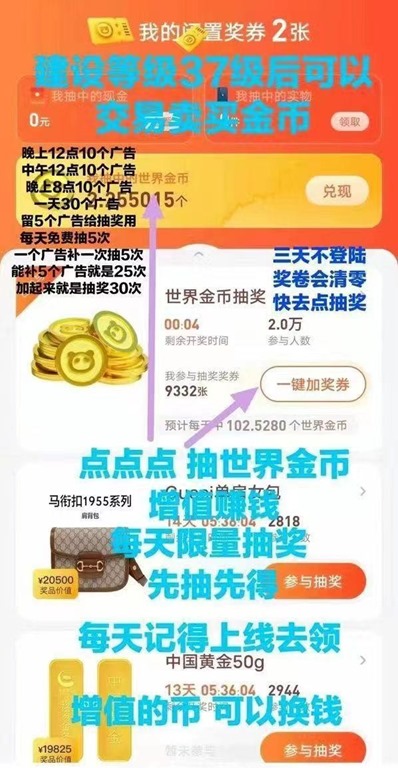 奖券世界,每天10分钟赚米,长期耐玩,奖券参与抽奖收益丰厚。奖券世界每日躺赚,永久管道收益,世界金币变现方式。奖券世界平民玩法,奖券世界高阶玩法。奖券世界最开始做的元老金币资产已经翻倍50倍,奖券世界今年的分红暴富机遇!