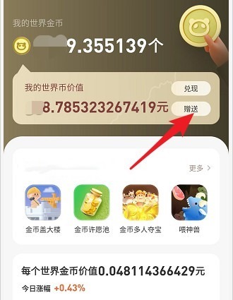 作为世界城元宇宙的流通货币,可以在世界建筑,金币许愿池,金币夺宝,金币租借,金币商人证,金币喂神兽,金币盖大楼,金币跳一跳等应用小程序中消耗或赚取