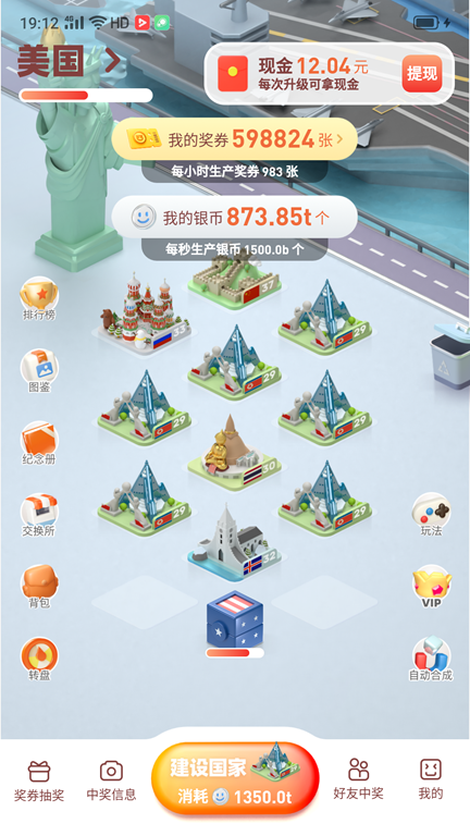 奖券世界是一款合成类游戏,通过合成建筑来获取奖券,奖券参与抽奖,而且产生的奖券永不过期,抽完这次奖还会自动参与到下一次抽奖中。