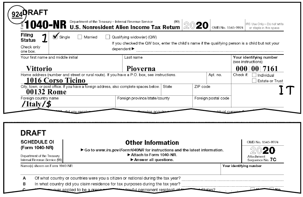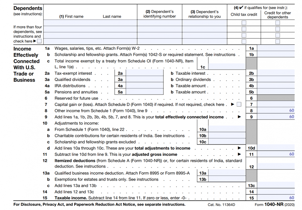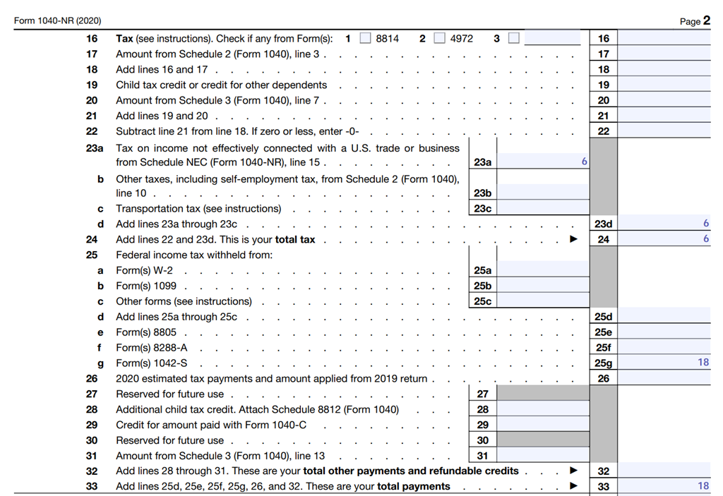 关于 1040-NR 表格,美国非居民外国人所得税申报表