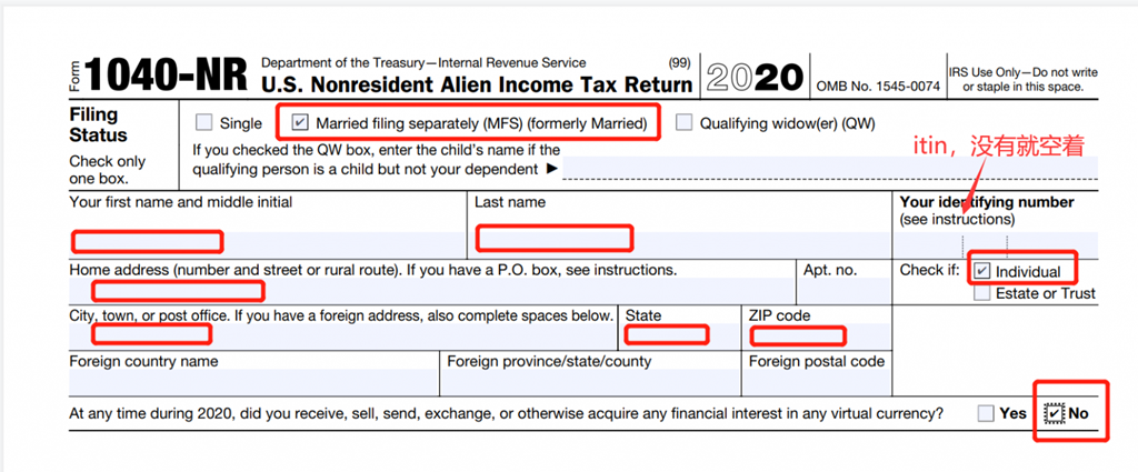 这里表格1040-NR仅供参考,每个人的税表不一样。如果实在不会填,请找美国本土专业会计师帮忙。