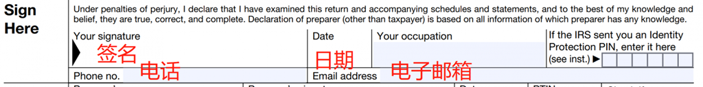 签名需要手写,所以要把1040NR表格打印出来再签名: