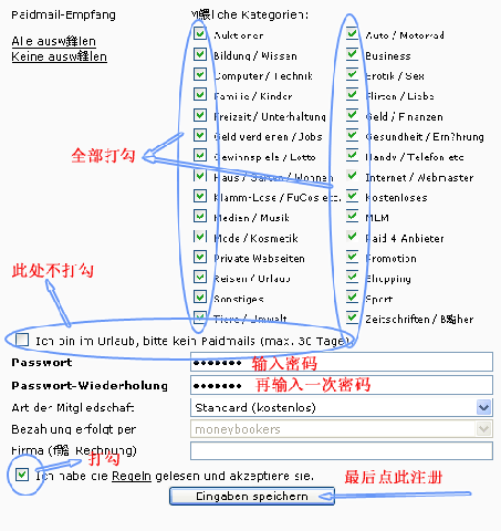 2、打开注册地址后点网页左边中部 Mitglieder栏目下的 Anmelden,出现如下界面