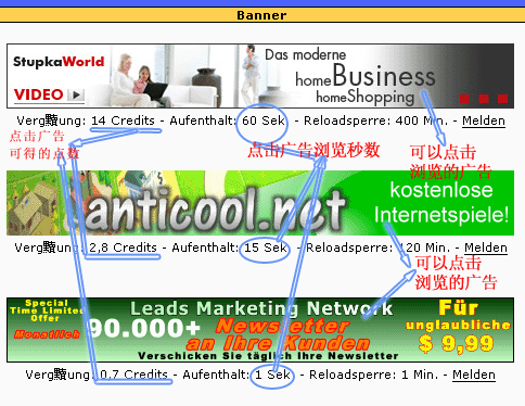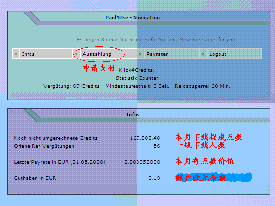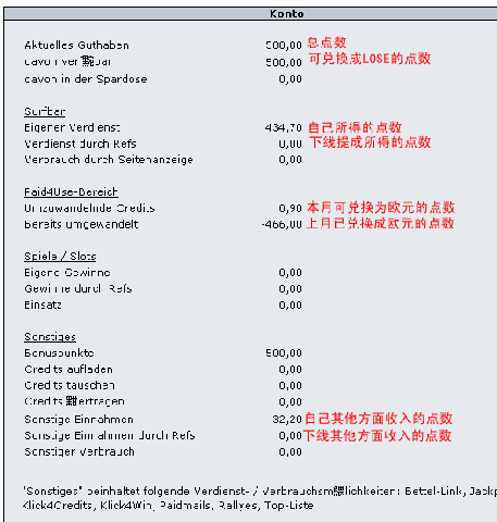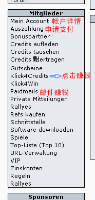 点最左边的 Mitglieder 栏目下的 Klick4Credits 即可操作点击赚点。