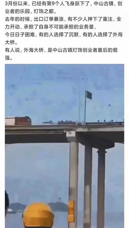 中山古镇,外海大桥,已经有第9个人飞身跳海自杀了….