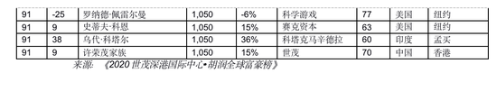 来源:《2020世茂深港国际 中心 胡润全球富豪榜》