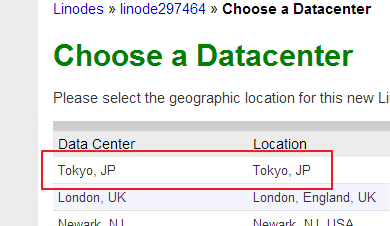 Linode有6个机房可选:London、Newark、Atlanta、Dallas、Fremont、Tokyo,对于中国用户来说,因为网络节点地理位置因素,选择东京机房会很快。