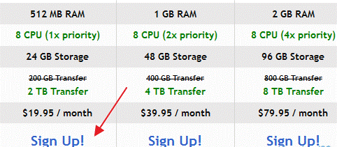 3、进入Linode网站,选择一个VPS主机套餐,点击”Sign Up”。