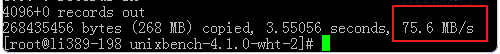 3、然后是磁盘读写速度,这个表现不错,达到了75.6MB/s。