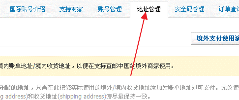 6、点击财付通美国运通卡的”地址管理”可以看到境外账单地址/境外转运地址。