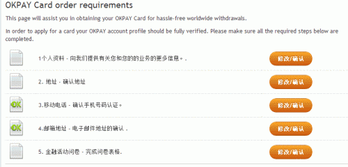 1、与Payoneer相比,OKPAY卡认证过程实在是太复杂了,尤其是那一项要求含有自己姓名和地址信息的地址证明,跟国内的实际情况实在是不相符合。