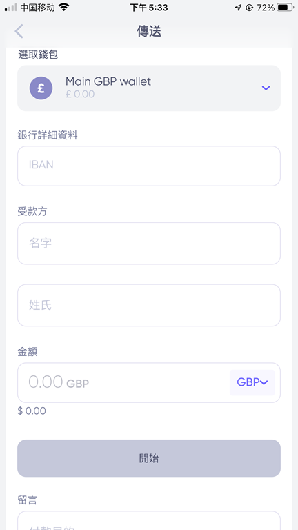 接着我们去 使用 Quppy 手机端用英镑给这个账号转账即可:
