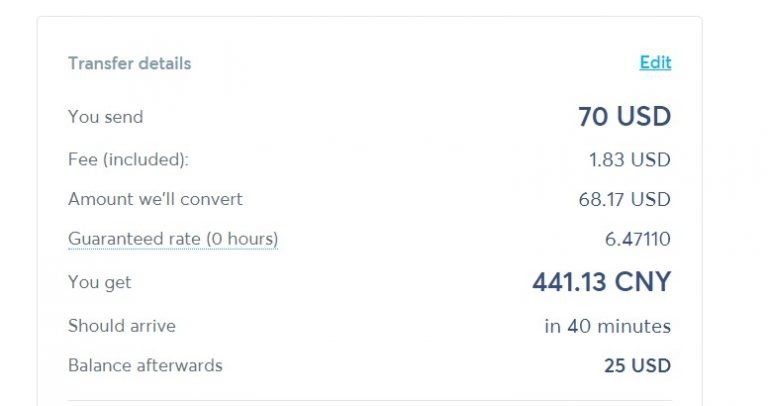 2. 电汇:使用你的银行手动将资金转移到Wise,然后再进行汇款,收款人预计在6小时手动汇款;