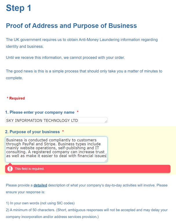 為降低出錯風險,我們建議您購買提交前審核服務 – 在訂購過程中需支付 4.99 英鎊。這將確保我們的一位專家在提交給 Companies House 之前審查您的公司申請並糾正任何錯誤。