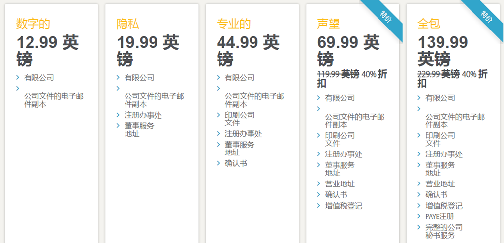 註冊英國公司以19.99 英鎊為例,主要考慮有隱私服務,和註冊英國公司提供辦公室地址,而最便宜的12.99 英鎊套餐沒有